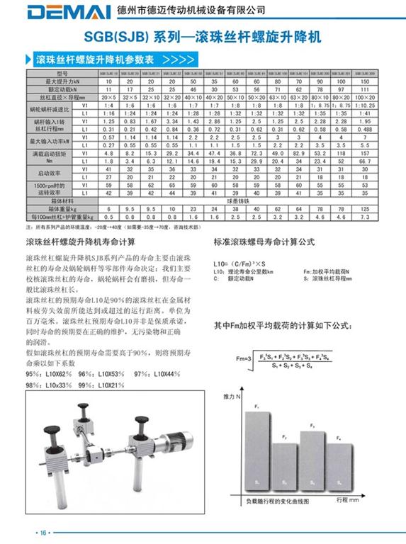 SJB方箱滾珠絲桿升降機(jī),為方箱殼體配備了滾珠絲桿,滾珠絲桿具有傳動(dòng)效率高,精度高,壽命長等諸多優(yōu)點(diǎn)。SJB滾珠絲杠螺旋升降機(jī)系列產(chǎn)品的壽命主要由滾珠絲杠的壽命及蝸輪蝸桿等零部件決定;我們主要校核滾珠絲杠的壽命,蝸輪蝸桿會(huì)受到磨損,但壽命一般比滾珠絲杠長。此款升降機(jī)多應(yīng)用在精度要求高等環(huán)境下,入高端的自動(dòng)化設(shè)備。
