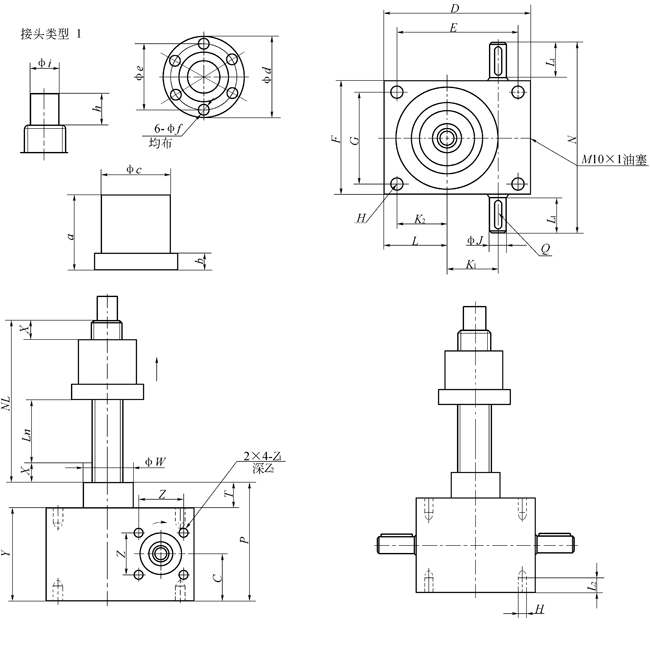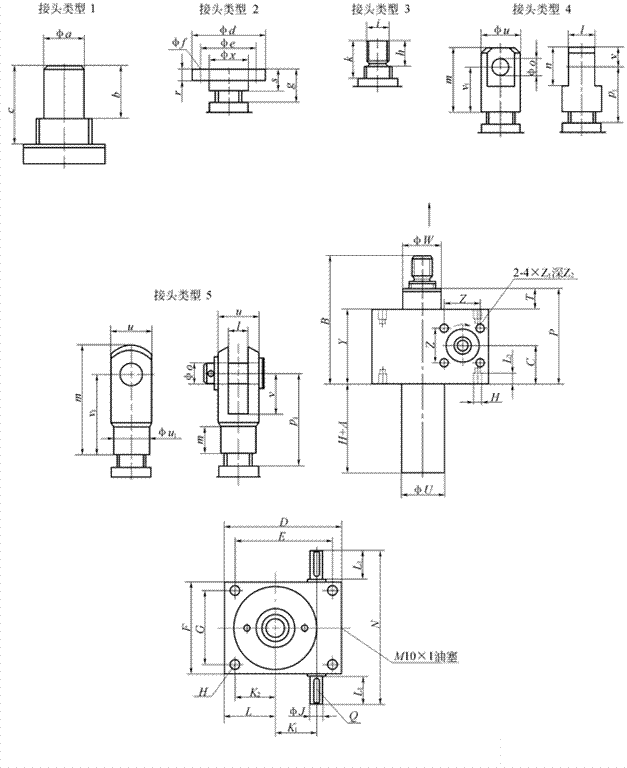 B型結(jié)構(gòu)形式的絲杠頭部分為:1型(圓柱),0型(無(wú)接頭)共二種。