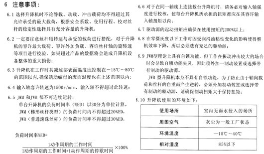 JWB型(滾珠絲桿升降機(jī))基本選型參數(shù)一覽表