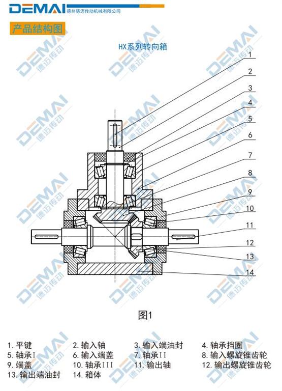 我們今天就來為大家講解一下HX系列轉向箱的內部構造以及主要部分選用的材質,讓您對我們的產品有個更加深刻的了解,方便您在設計方案時可以有更多的選擇性。 圖中就是HX系列轉向箱的結構圖,看著轉向箱很普通,但是內部還是有這么多零部件在保證轉向箱的正常運轉。我們再來說一下主要部件的材質選用。
