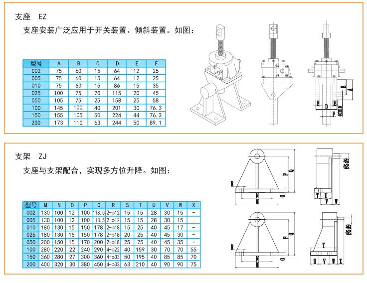 關(guān)于絲桿升降機(jī)我們講了很多,那么絲桿升降機(jī)在安裝時如果有安裝支座和支架的要求的情況下,具體的安裝方式和配件尺寸今天來跟大家仔細(xì)講解一下。