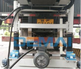 下圖為我公司生產(chǎn)的螺旋絲桿升降機(jī)構(gòu)用于檢修車輛設(shè)備中,采用的是兩臺(tái)聯(lián)動(dòng),螺母升降,電機(jī)放中間,一臺(tái)電機(jī)控制兩臺(tái)升降機(jī)同步穩(wěn)定升降。