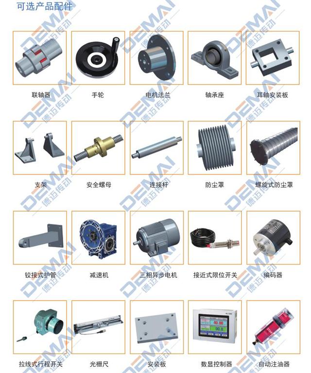 絲桿升降機(jī)在選型的時(shí)候,因?yàn)楹芏嗫蛻舻墓r以及使用環(huán)境的原因,需要裝配一些特殊的配件。今天德邁傳動(dòng)就把我公司可以選配的配件分享一下,讓大家在選購(gòu)升降機(jī)的時(shí)候可以根據(jù)自己的使用情況,做出響應(yīng)的配件選擇。